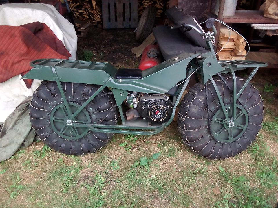 Покупал лет 5-6 назад, несколько раз прокатился, один раз на охоту брал на Алтай и все))) Стоит))) Продам за 50 000 руб. Износ небольшой. Колеса скорее всего подлатать надо будет. Пару камер от УАЗа. Ну или может быть поменяюсь на чтонибудь ненужное)))) Например гармин феникс 6))) Полный цепной привод, гребет неплохо. есть пара шестеренок для замены. Влияют на скорость и тягловитость)). В задумке было поставить редуктор и сделать его двухскоростным. Болота, песок, грязь снег не сильно глубокий, пересеченка, идет везде. Вдвоем ездить неудобно, развесовка не позволяет, ну или я водятел такой))). 1 человек и груз на двух багажниках тянет спокойно. груза килограмм 100 вывезет. мощщи хватит) Короче неторопливый и тягловитый. На этой шестеренке идет до 40км/ч. Если поставить большую ведущую шестеренку говорят будет до 60 км/ч идти. Но на мой взгляд не нужно ему это))) Тогда потеряет в мощщи. Фото когда покупал)) сейчас наверное потускнее будет))) тел: 8-913-955-49-95