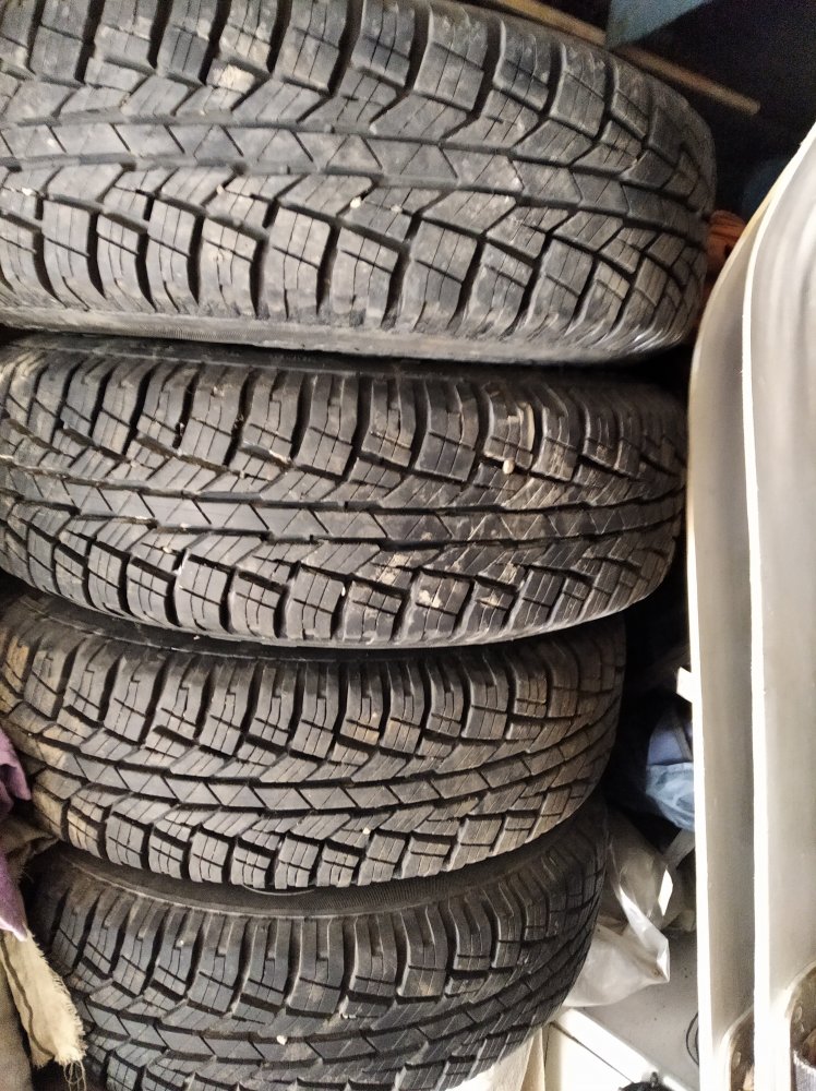 Продам колеса на Ниву/ Шниву. В Томске. Резина Cordiant All Terrain А/Т. Практически новые, пробег около 2000км. Износа нет. Ни единого прокола. Грыж и порезов так же нет. Колеса ровные. Шины одеты на шнивовские штампованные диски. Сами диски в хорошем состоянии, не гнутые не катаные. Колеса накачаны и отбалансированы. Размер 205/70/15 Сверловка 5/139,7 Цена 15000 8923440з998