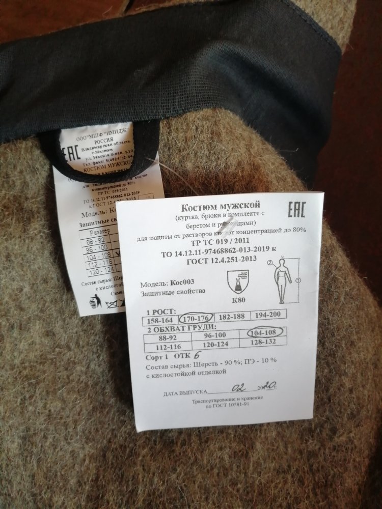 Продам костюм (суконка) Комплект : куртка ,штаны,шапка ,верхонки , плюсы костюма; не шуршит,быстрое влага отделение ,тёплый ,лёгкий, костюм 100% шерсть ,новый ,место нахождения Томск рост 170-176 обхват груди 104-108 тел для связи 89521611112 Андрей, желательно самовывоз, цена 2600, вопросы в личку пожалуйста,