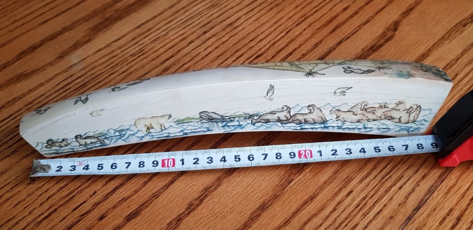 Продам расписной фрагмент бивня мамонта, рисунки выполнены с двух сторон. Вес 920гр. Чукотка. Цена 25000 руб. Находится в Москве, возможен пересыл. По вопросам пишите в лс