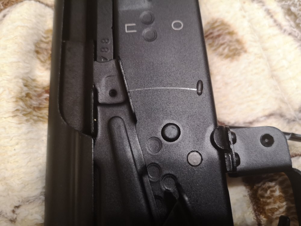 @Dolfor, скоба предохранителя сильно полоз набила на коробке? В целом весьма похоже, что ствол витринный.