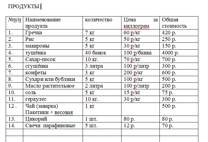 А вообще, это базовый список. При отоваривании, естественно, что-то добавится. Может, и сыр какой-нибудь плавленый возьму.