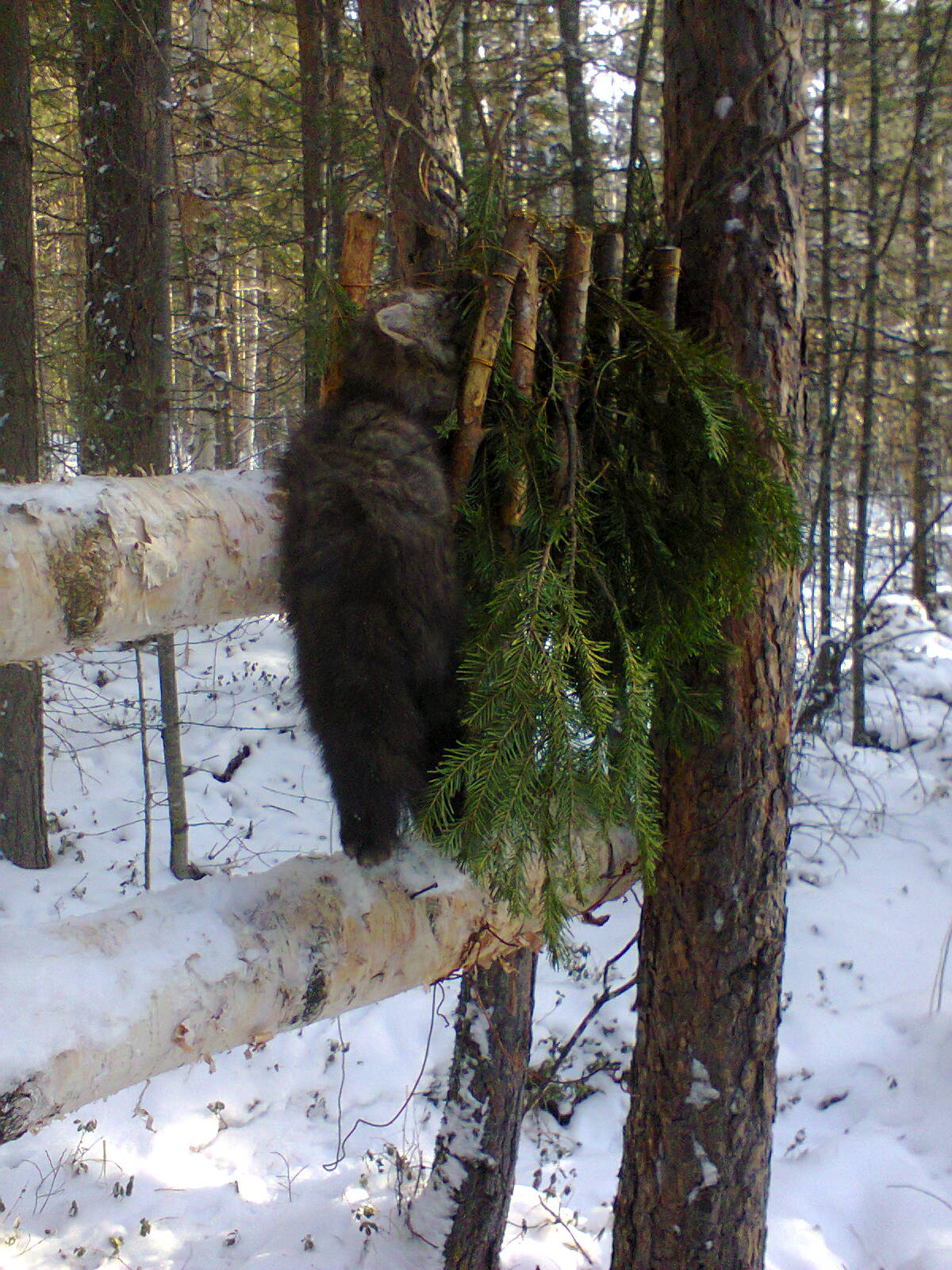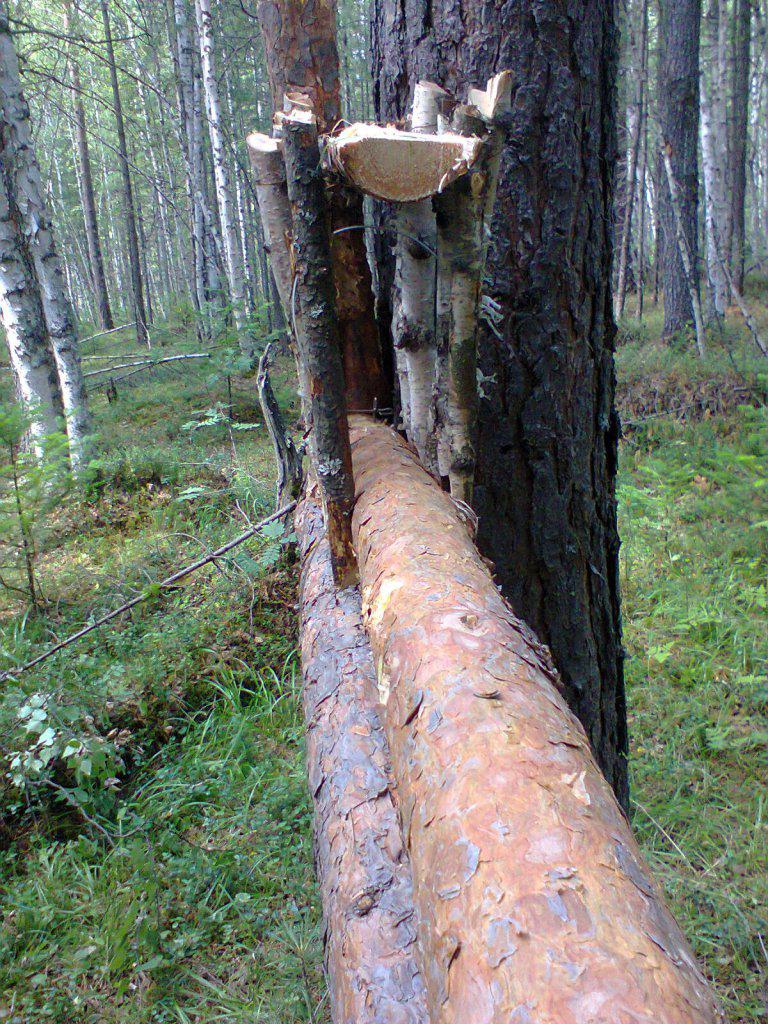 Ранее упоминали про "сахалинский" давок. Я делаю петлю-давок немного по другому. Ловушка соболей "работает" нормально. На изготовление уходит около 40 минут. Стенки при наступления сезона прикрываются ветками хвойных пород наглухо.