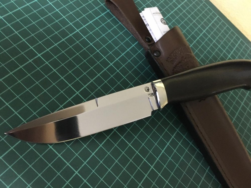 Сталь ручной ковки х12мф, твёрдость 62 ед., Рукоять коричневый граб 120 мм.Клинок спуски вогнутые линзообразные 135 мм. Ширина клинка 30 мм. Толщина 3мм. Ножны глубокие, на свободном подвесе, натуральная кожа.Не является холодным оружием.Стоимость 4400 р. Плюс почта на покупателе.