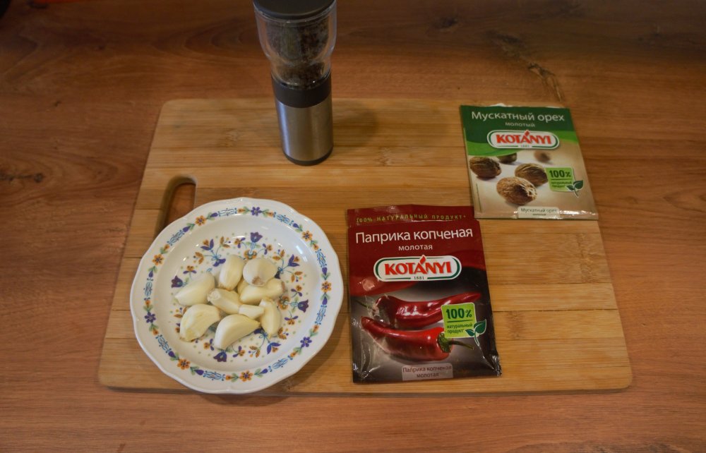 Специи- «по вкусу», но имейте ввиду, без мускатного ореха – никуда, желатина- примерно 0,5 чайной ложки. В зависимости от приведенного выше «рейтинга коллагенности» дозу желатина увеличиваем или уменьшаем.