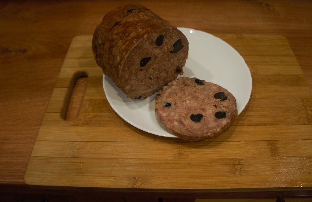 А потом- вот это, «конечный продукт» . Для повышения «естественности цвета» я раньше использовал свекольный сок на стадии замеса фарша. Теперь перестал, ибо на вкус не влияет вообще.