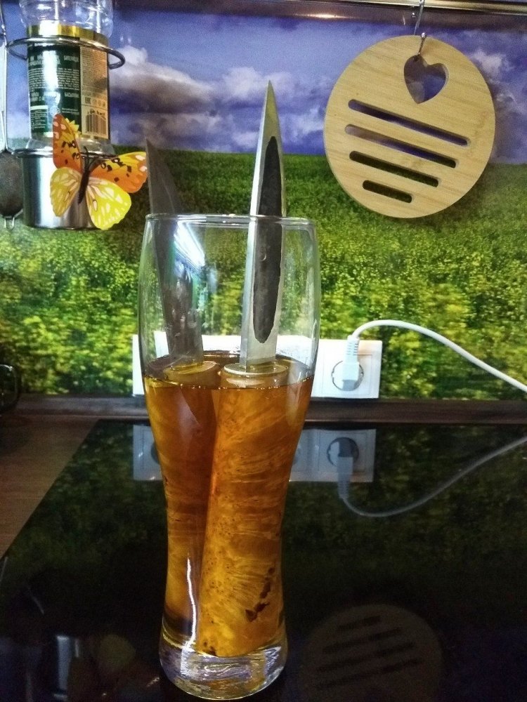 А пока купаются у меня пару ножичков в льнянке после выварке на водяной бане.