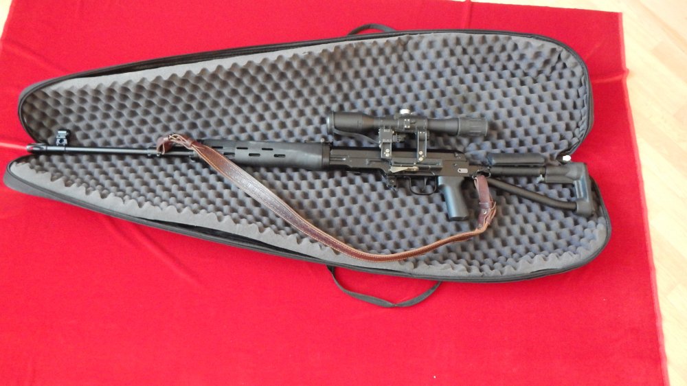 Карабин в идеальном состоянии, из коллекции, на охоту не выезжал. Настрел 10 патронов. Длина ствола=620 мм. С 8-ми кратной оптикой, с ночной подсветкой шкалы прицеливания.С регулирующимся, складным прикладом. В мягком чехле. Магазины на 5 и 10 патронов.Боеприпасы. Кучность стрельбы на 100 метров, без прицела=57 мм. 95000 рублей.