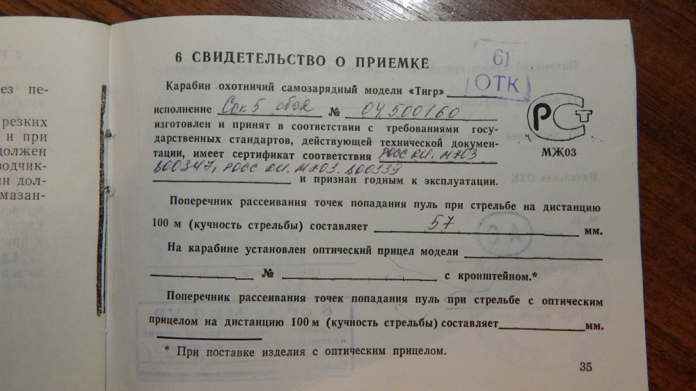 Продам карабин "Тигр" кал.7,62х54 (исполнение 02)2004 год вып.