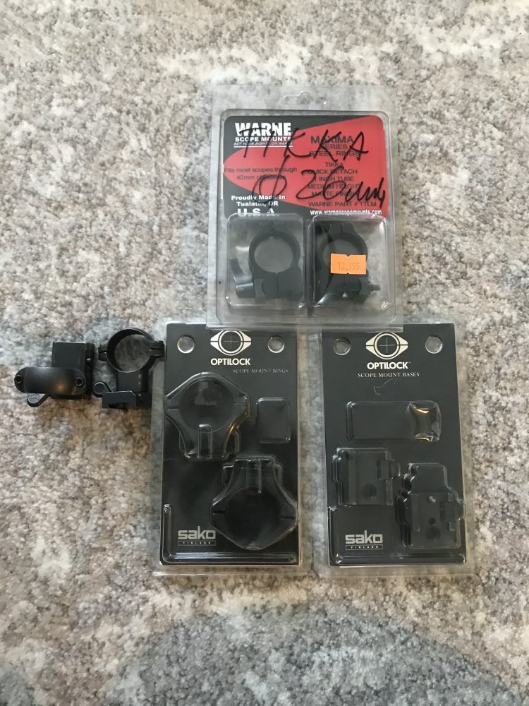 Стальные быстросьемные Кольца люпольд с базами на SAKO 75, дюймовые, 10 000р.; -Optilock Tikka T3 (базы, кольца 30 мм, средние)- продано; - Warne дюймовые тикка т3- 2500 р. Дополнительные фото, вопросы по тел. 89132589888