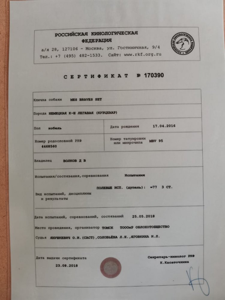 Первые трое владельцев щенков, получившие дипломы с полевыми испытаниями в 2023 или 2024 г. получают частичный возврат стоимости щенка: 1 владелец -5000 рублей; 2 владелец -3000 рублей; 3 владелец - 1000 рублей. Фото диплома сбросить на ватсам по тел.+79132466666 или электронку E-mail: saurin@mail.ru