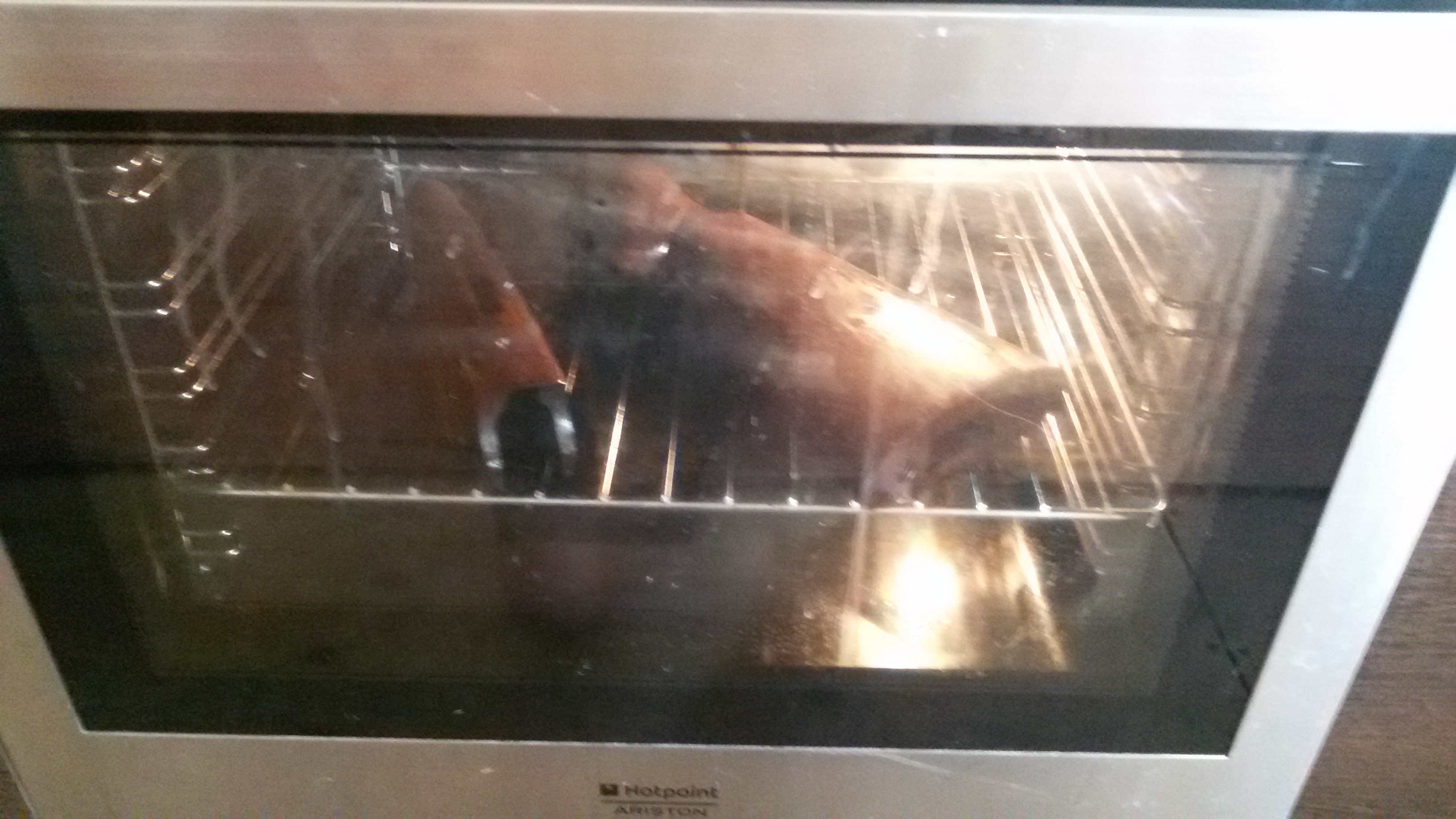 Промазал и поставил в духовку на сто градусов, для лучшей пропитки, периодически вынимал и мазал снова.