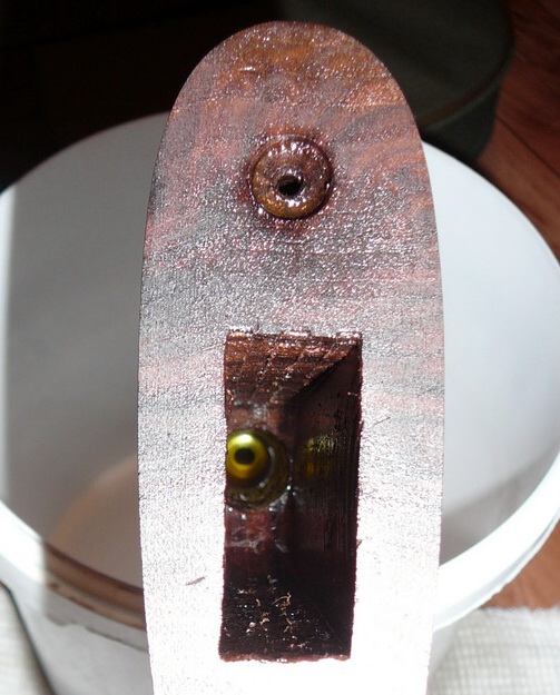 А вот цевье внутри почище, но тоже есть немного лака, буду обдирать.
