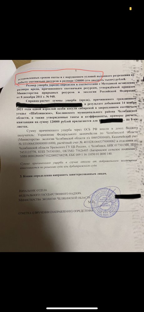 Никто ничего не перевернул. 4000 - это штраф за нарушение ст. 8.37 КОАП , 120 тыс. - это возмещение ущерба животному миру в соответствии с официальными "расценками" МПР. Что за такое "определение" по которому пытаются "лишить оружия" - я вообще не понимаю. Вы скан выложить можете? Если это уже готовое Постановление о привлечении, могли уже и сроки обжалования выйти.
