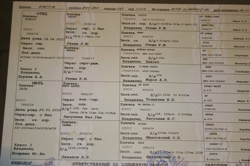 мама Лата ВПКОС 7443-16 Отлично работает белка,куница,кабан,лось,медведь,барсук,глухарь имеет 10 дипломов живая,злобная,поиск 500-1000 м Папа Тунгус ВПКОС 1526-19 вязкий,злобный,поиск широкий Лось,кабан,медведь,барсук тел 8 913 363 8777 8 960 957 5807 цена 10 000 щенкам два месяца