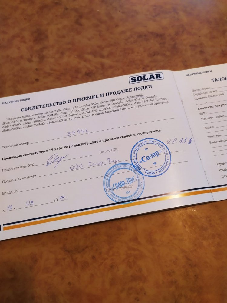 Продам лодку SOLAR 380