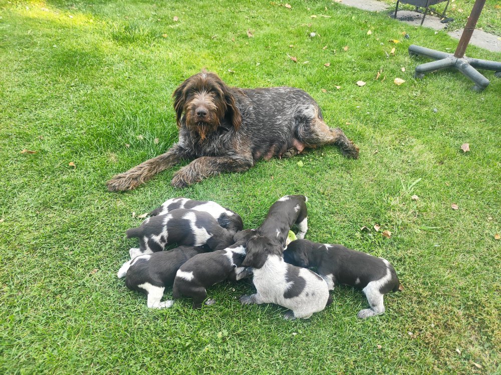 рождены 29.08.2022 , забирать можно с 20.10.22 хвостики купированы. Родители рабочие: Мама - водоплавающая и боровая. Папа работает по копытным, боровой, водоплавающей. (очень крупный кобель). цена 5500 для форумчан -500р тел. 891З92728З7