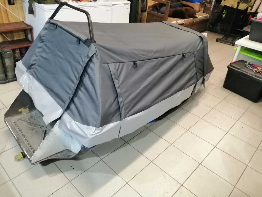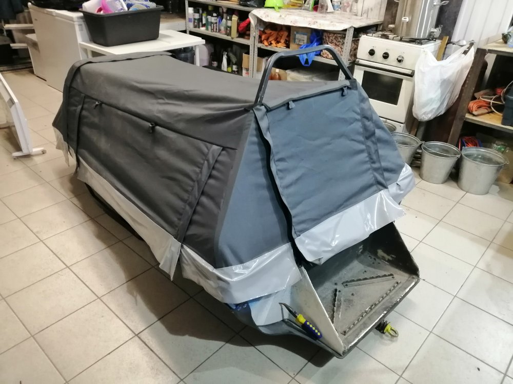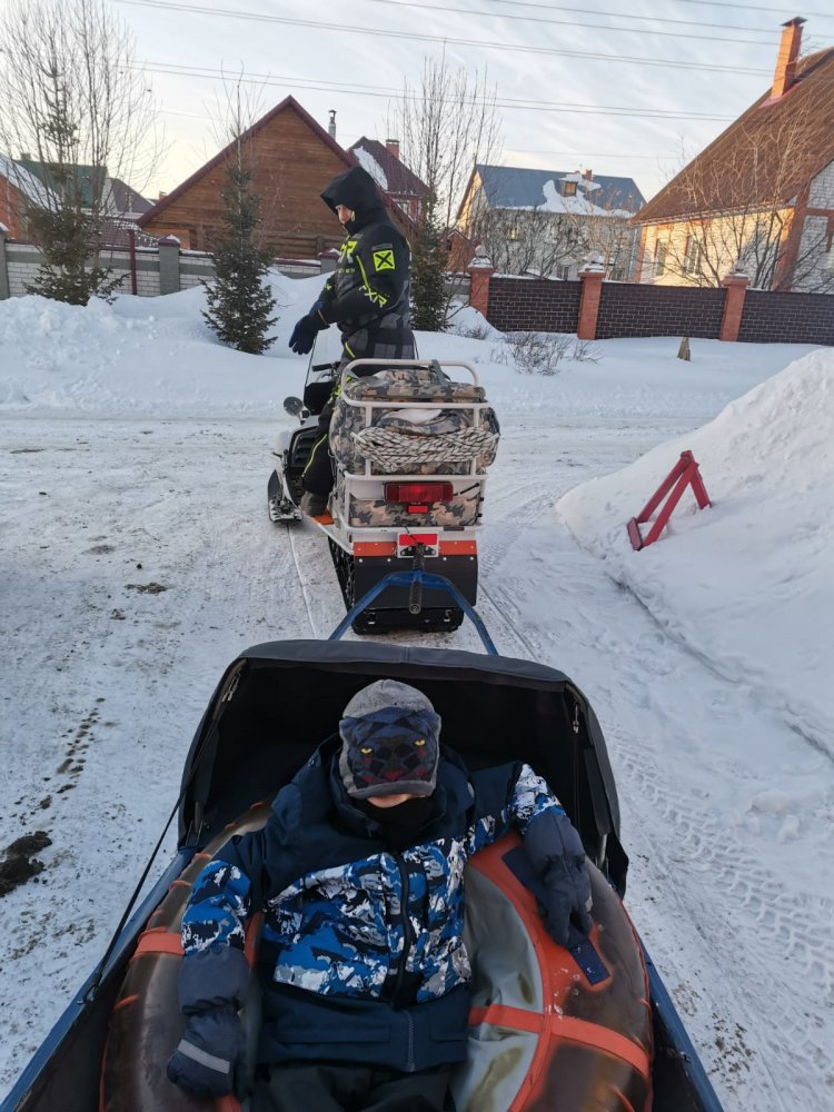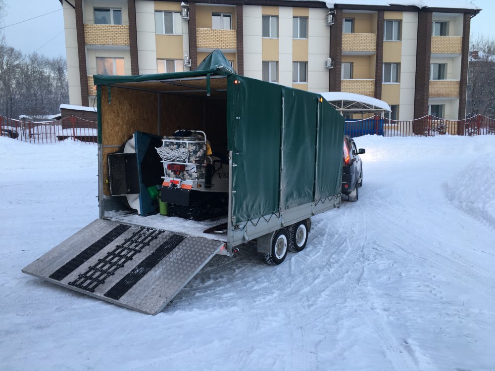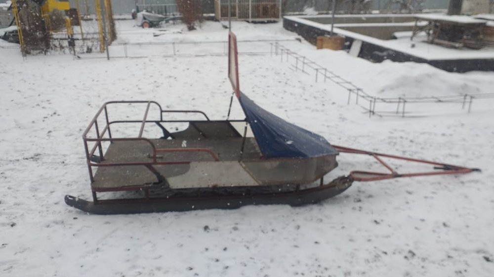 Розвальни с тентом, и подножкой для заднего пассажира Ценник: 100 000р сделаны из стекловолокна, подшиты твердам пластиком, имеют сменные полозья покупные. Сзади приклепан конёк чтобы не уходили взанос при ровной езде. Дышло проварено аргонной сваркой, механизм зацепления на пружинах от вилки какогото мотоцикла, Рым-Болт, тавотница. Дышло приделано к саням через жигулевскую шаровую опору для смягчения ударных нагрузок на стекловолокно. Дышло складывается под сани, для перевозки в прицепе, в складном состоянии у меня прищеп 3500мм на 2200мм, входя легко. До этого был обычный узкий прицеп для снегохода, они немного зыади торчали 23-30см, не входили по ширине в месте где стоит нос снегохода. Откидной козырек на носу, предотвращает от попадания снега из под гусянки, складной поручень для пассажира, играет также роль каркаса тента. Тент сделан из качественного материала, натягивается и крепится легко, открывается на замках по бокам и сзади. Это мои как охотника самые рабочие сани, проходят везде, целик, бураница итд. Засчет конструкции розвальни их практически нереально завалить на бок.