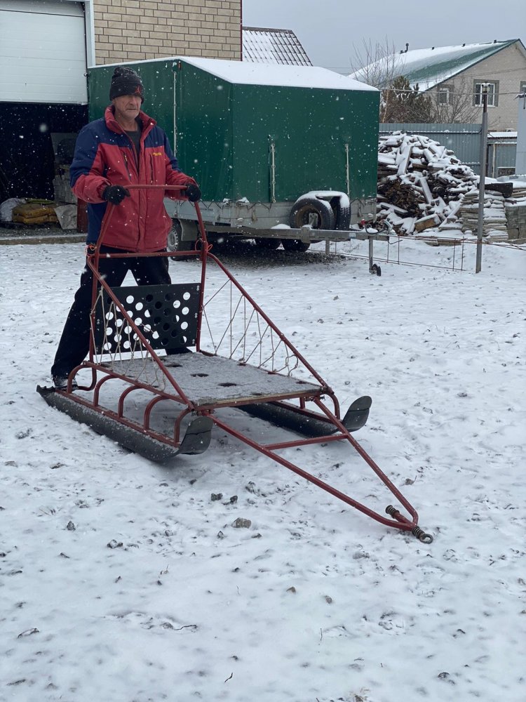 Сани большие экпидиционные, подойдут только бураночникам и тем кто устраивает зимние покатушки для людей. Ценник 70 000р Если их загнать в целик, сразу прощай ремень. По укатанкам огонь. Также все проварено аргонной сваркой, есть крепления для легкого монтажа 2 седушек со старых моделей УАЗ (Козликов) Откидное ветровое стекло, сзади каркас багажника, туда можно изготовить тент рундук или обшить его как герметичный ящик, кто на что горазд. Полозья из перевернутой ПНД трубы, в задних частях ПНД труб отверстия для буксировки лыжников или еще кого... Размер между осями полозьев совпадает с размерами все межосевых размеров снегоходов 960мм. Так же имеется дополнительное прицепное, для следующих саней или лыжников. Дышло крепится через жигулевский саленблок сразу к полозьям. Приклепана отводящая пластина для предотвращения встречи пеньков. Сани не складные, для них необходим либо отдельный прицеп, либо стационарное место.