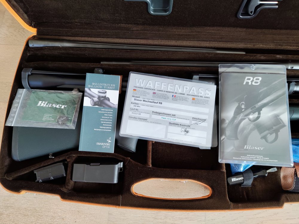 Продам винтовку Blaser R8 с двумя стволами в калибрах 308 и 223 В комплекте кроме винтовки оригинальный кронштейн Blaser под оптический прицел Carl Zeiss Victory HT 2.5 - 10x50. Данный комплект в оригинальном кейсе Blaser на 2 ствола. Винтовка заказывалась в Германии и отличается от стандартного исполнения отличается стволами с канелюрами, спусковым крючком из желтого метала и рукоятью затвора с узором. Винтовка в идеальном состоянии, на охоте не было, в тире пристрелян оптический прицел. Общий настрел на каждый ствол 20-30 патронов. Продажа по лицензии. Переоформление - ОЛРР г.Новосибирск Цена 1,4 млн.руб. аргументированный торг тел. +792324шесть7три44