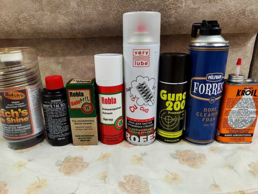Все что нужно для чистки оружия от фирмы Tipton и VFG. Все что написано ниже есть только в единичном экземпляре. Цена каждой позиции ниже тел. +7923467три44 Станок универсальный для чистки оружия Tipton Best Gun Vise - 25 т.р. Пипетка Tipton Pipettes для жидких химических средств 12 шт в упаковке - 1 т.р. Шомпол карбоновый Tipton Deluxe на подшипнике - 9 т.р. Ерш нейлоновый для чистки оружия Tipton Bore Brush - 400 руб. Ерш бронзовый для чистки оружия Tipton Bore Brush - 500 руб. Вишер Tipton Ultra Jag из берилиевой бронзы - 1 т.р. Вишер латунный (петля) - 500 руб. Тампон фетровый VFG (Упаковка) - 1 т.р. Есть немного средств для чистки, то что на фото. Пена FORREST для чистки от нагара и омеднения, 500мл - 4 т.р. Пена VERYLUBE для чистки стволов 500мл - 1 т.р. Масло оружейное KANO KROIL - 2,5 т.р. Robla solo mil 100ml - 1 т. р. Robla SOLVENT (SPRAY 200ML) - 500 руб. Sweet's 7.62 Сольвент 200мл - 1,5 т.р. Butch's Bore Shine сольвент чистящий 475мл - 6 т.р. Gunex 2000 spray, 200 мл - 1 т.р.