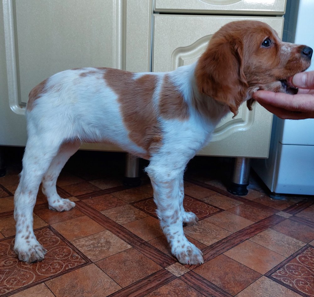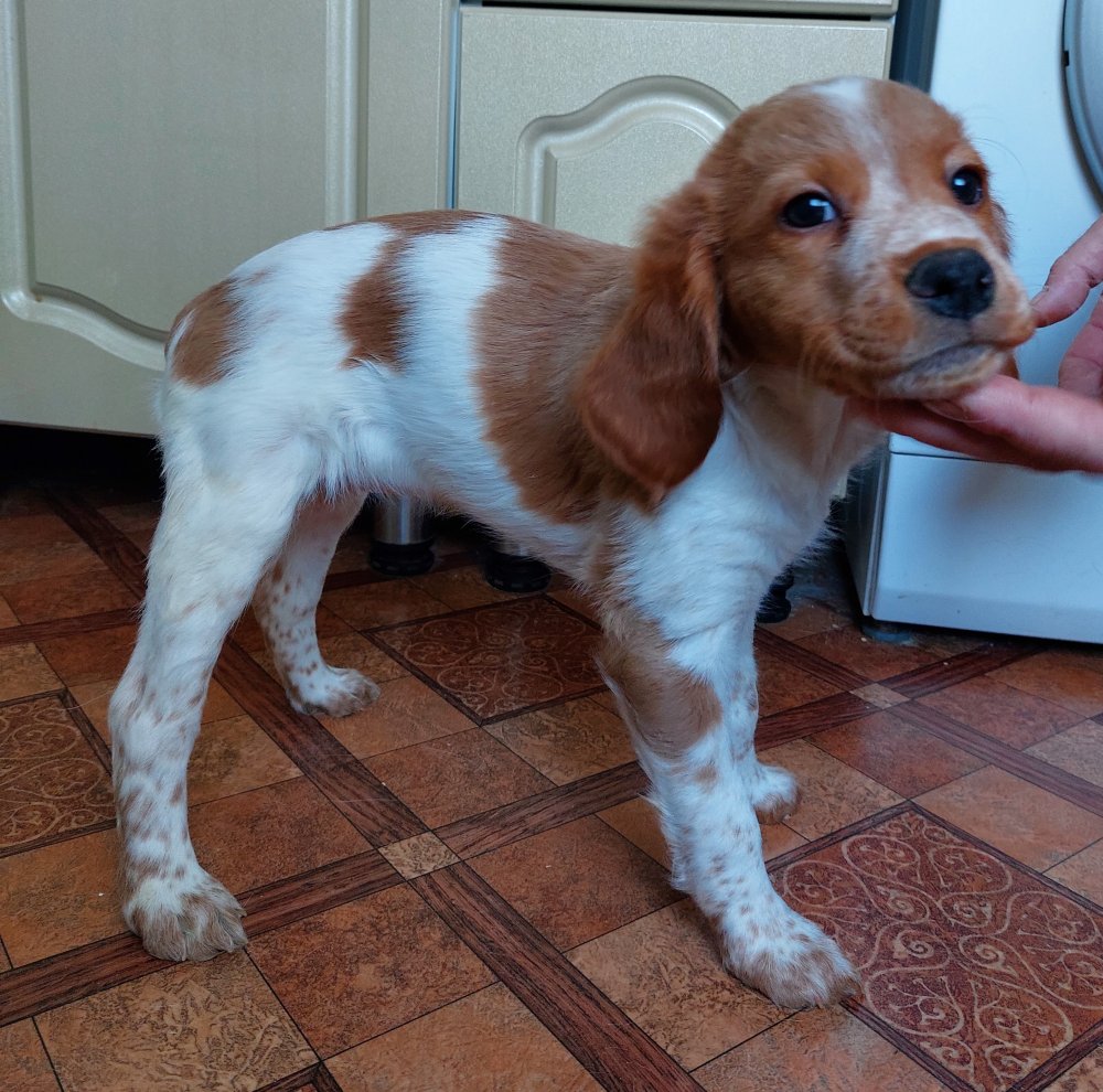 Продам щенков породы бретонский эпаньоль от титулованных родителей по экстерьеру и работе в поле по птице. Отец - Boss del and Serbia, чемпион РКФ, чемпион РФ, чемпион Европы, рабочие дипломы (по водоплавающей дичи 60 3 ст. (утка), по болотно-полевой дичи - 71 3 ст. (бекас), по кровяному следу - 55 3 ст.). Мать - Villa чемпионка РКФ, чемпионка РФ, рабочий диплом по болотно-полевой дичи - 71 3 ст. (бекас). Цена - 30000 рублей. Дата рождения — 09.10.2022. Осталось 3 суки. Все рыже-белые. Щенки прошли актировку, поставлены клейма, получены карточки щенков РКФ,поставлена первая прививка. Щенки находятся по адресу: Хабаровский край, г. Амурск. Т.: 8-984-178-67-22, 8-984-263-88-98. Брето́нский эпаньо́ль — охотничья подружейная легавая собака, одна из самых популярных легавых в Европе и США.Это очень умная порода, спокойная и послушная,хорошо ладит с другими домашними животными и детьми.Бретон эпаньоль - небольшая собака: высота кобелей в холке — от 47 до 52 см, сук — от 46 до 51 см. Если вам нужен хороший охотник, верный друг и компаньон, звоните, с удовольствием отвечу на все ваши вопросы.