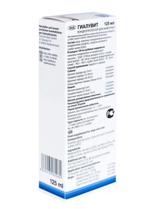 ГИАЛУВИТ (Гиалутидин), хондопротектор для собак и кошек для суставов собак или кошек, оригинальный Германия (Gramme-Revit) - продаётся за полцены. Остались от профилактического курса нашего щенка, оригинальная германская добовка (т.к. встречается еще отечественный аналог Гиалувит Актив и ирландский аналог Страйд плюс). Есть только 2 запечатанных флакона 125мл по 1400 руб., на один 60 дневный курс собаки или кошки. Пара флаконов - 2500р (за оба), ровно за полцены от розничной. Тел 8 925 039 85 29 Москва
