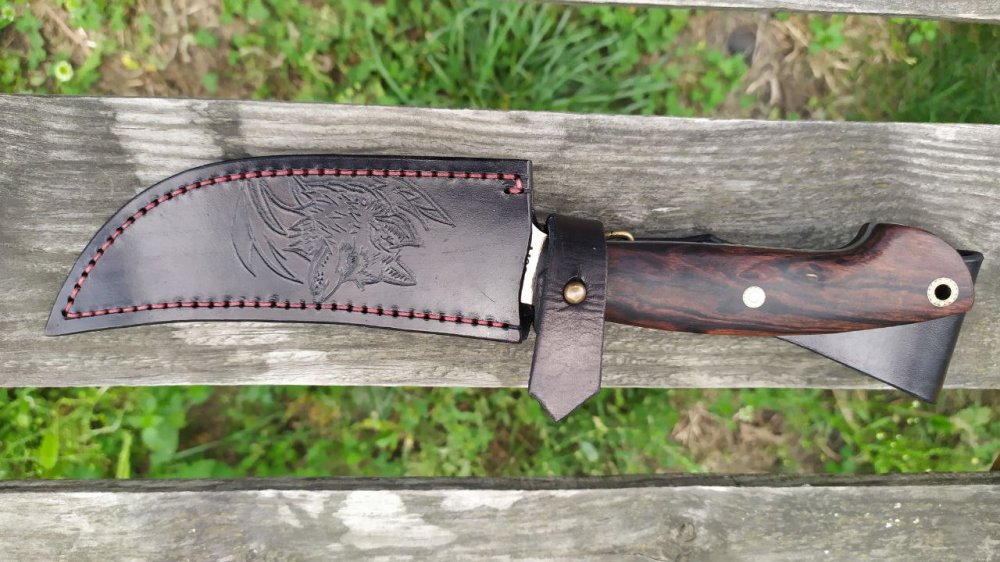 Нож цельно металический (фултанг) ручная работа в единственном экземпляре. Термообработка и слесарка Влада Бондаренко. Твёрдость 65hrc сталь М398 рукоять аризонское железное дерево, Пины мозаичные светятся. ножны свободный подвес кожа шведская растительного дубления. Теснение. Могу привести в Барнаул. цена 32000 руб. тел.89619826916