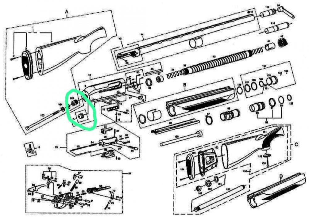 Приветствую всех! Помогите решить проблему. У моего отца ружье Sarsilmaz SA-X 700 И сломалась в нём деталь пластиковая одна, как называется он не знает, фотографии нет. Я нашёл схему этого ружья и на ней нашёл эту деталь, но названия нет. Может кто знает как называется и вообще продаются такие запчасти. На схеме объвел эти детали. Получается эти детали пластиковые соединяются в паз между собой. Кто то из знакомых сказал что это амортизатор затвора. Просто в интернете мало информации по этому оружию. Заранее благодарен всём кто поможет.