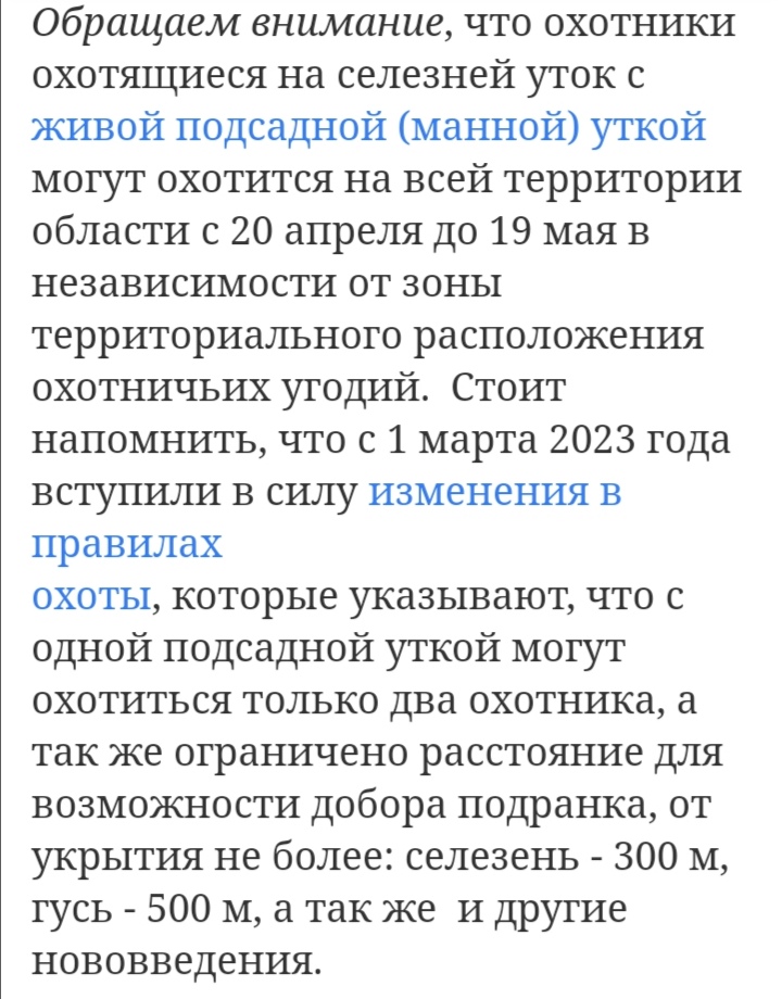 @sander76, случайно зашёл Ваше обсуждение темы весенней охоты посмотреть. Удивили! В Ваших краях разрешения ещё до сих пор в "ящичек" сдают после сезона?! В Новосибирске строгости уже давно, мама дорогая! Лично. Печать. Подпись. Предупреждение о необходимости хранить документ о сдаче весь год. За несвоевременную сдачу(и несдачу) разрешений более 9 тыс. охотников по линии общедоступных охот.угодий в 2022 г. лишились на год права охоты. А у вас - в ящичек.... Или уже ждёте усиления режима?