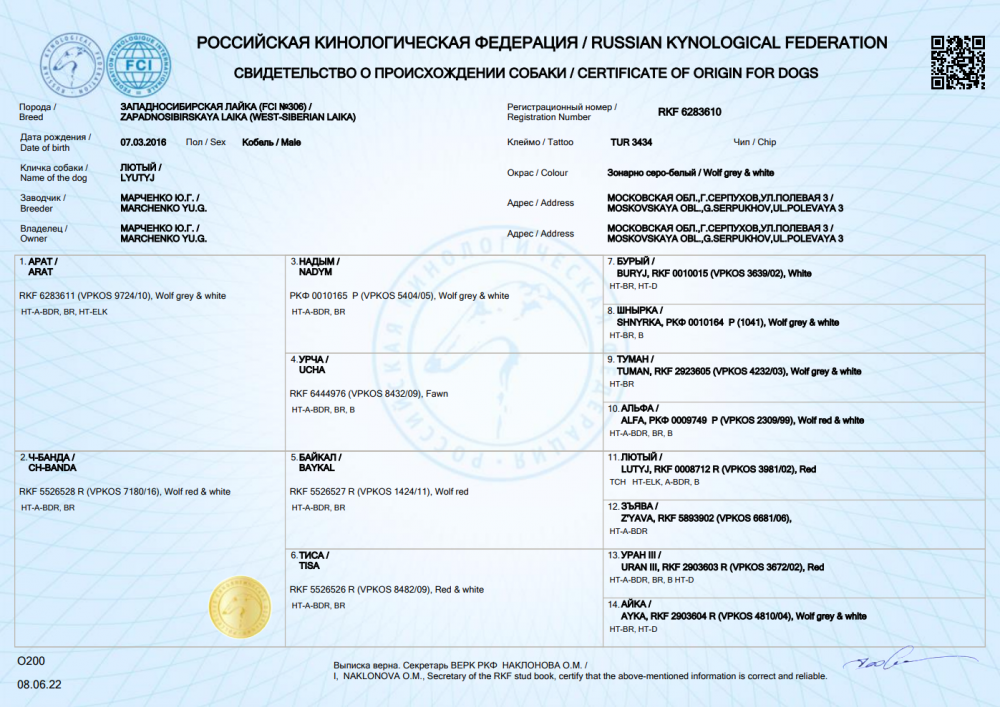 Отец - Лютый (Арат х Ч-Банда), RKF 6283610