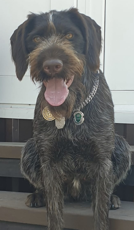 отец - Einar Vom Honeverg - J Ch.Rus, J Ch.RCF, Ch.Rus,Ch.RCF, 10 CACIB, Multi BIG Winner, 3-Д3 - болотно/луговая (дупель); 1-Д3 - перепел, 2-Д2 - водоплавующая (утка), 1-Д2- кровяной след