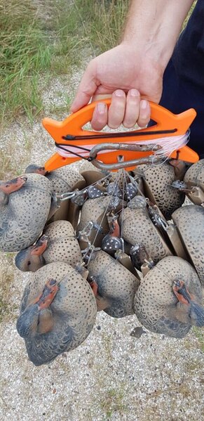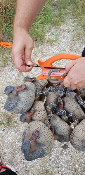 Продаю революционную систему укладки утиных муляжей, оснащённых 'техасской' оснасткой, позволяющей расширить горизонты использования 'техасской' оснастки как на мелководье, так и на глубине. Комплектация: Мотовило + 12 техасских оснасток, оснащённых скользящими якорными грузилами Duck brooD с повышенными удерживающими свойствами. Характеристики: Вес якорного грузила - 120 грамм (материал - свинец), длина шнуров: 1,5; 1,7; 2 метра (более 2 метров по предзаказу), толщина шнуров - 1,2 мм, материал мотовила - АБС пластик, вес мотовила - 110 грамм, техасские оснастки оснащены нержавеющими карабинами. Описание: Авторская система укладки плавающих муляжей водоплавающих птиц 'Duck brooD', оснащённых 'техасской оснасткой', от российского охотника с 30-ти летним стажем Александра Скоробогатова (интеллектуальные права защищены). Укладка муляжей производится при помощи специально разработанного выносного мотовила уникальной конструкции, имеющего укладочный паз с запорным пальцем из нержавеющей, стали. Якорные грузила за счёт специально разработанной конструкции обеспечивают поперечное (в отличии от рыболовных грузил) якорение муляжей. Выносное мотовило позволяет: - одновременно и компактно укладывать два и более муляжей, оснащённых 'техасской оснасткой' (оптимально формируется связка из 12 муляжей); - исключить запутывание якорных шнуров при расстановке, сборе, переноске, транспортировке и хранении муляжей; - расширить горизонты применения 'техасской оснастки' (разрушив стереотип её применения 'только для мелководья') благодаря возможности использования длинных якорных шнуров (два и более метров); - комфортно транспортировать муляжи без использования сумок, мешков и т.д., что особенно актуально в условиях дефицита пространства (при охоте на лодке, при использовании саней волокуш и т.п.); - с одинаковым комфортом применять как монофильные якорные шнуры из полимерных материалов, так и плетённые шнуры из натуральных и синтетических нитей; - использовать якорные шнуры небольшого сечения (1 - 1,5 мм), что уменьшает общий вес якорных оснасток, делает невидимыми для дичи шнуры на мелководье, а также сокращает сопротивление оснастки при волне и на течении, и, как следствие, позволяет (не теряя эффективности) применять более лёгкие якорные грузила, снижая совокупный вес всех используемых муляжей. Видео инструкция использования: Стоимость комплекта (мотовило + 12 техасских оснасток): 3300 рублей. При одновременном заказе 2 и более комплектов скидка 5% на каждый комплект. Возможна поштучная продажа якорных грузил. Стоимость одного грузила: 100 рублей. Возможно поштучная продажа мотовила без оснасток: 1500 рублей. Доставка за счёт покупателя. В наличии есть цвета: (ОРАНЖЕВЫЙ,ХАКИ,ФИОЛЕТОВЫЙ,ЗЕЛЕНЫЙ,ЧЕРНЫЙ, СЕРЫЙ,СИНИЙ) Все вопросы и заказы по What'sApp: +7 908 513 35 96шесть (Андрей)