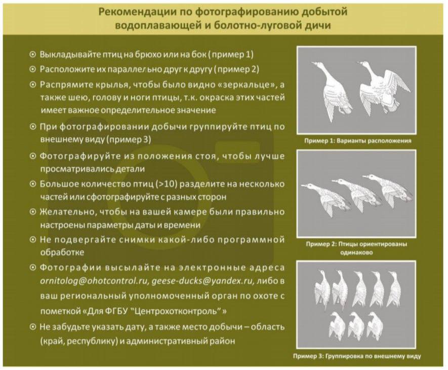 Союз охотников Сибири производит сбор сведений добытой утки и гусей. Для научных исследований. Фото присылать на roosibso@yandex.ru, а также на телефон +79835569767 Вотсап и Телеграмм. Фотографию делать согласно инструкции! ☝