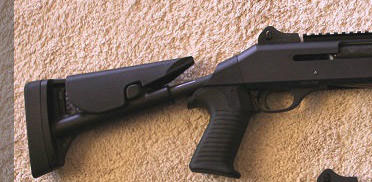при отставленой назад рукоятке, самый удобный приклад на трубе, ложится удобно в выемку межу большим и указательным пальцами.