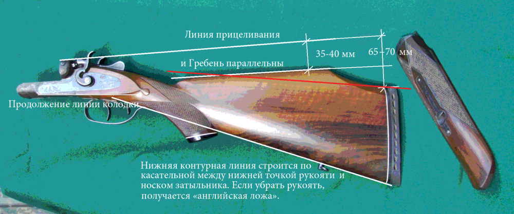 Далее, берёте кусочек круглого карандаша, закрываете глаза, вкладываете ружьё в плечо и замираете. Напарник кладёт кусочек карандаша на прицельную планку. Если карандаш катится к дульному срезу, надо будет добавить "мясо" в пятке. Всё зависит от длины приклада и удобства вкладки. Если к казенному срезу, то в гребне. Для этого ослабляем затыльник, что бы появился зазор, и в зависимости от того, где убрать или добавить подкладываем прокладку из бумаги. Добиваемся того, что бы стволы были четко горизонтально линии прицеливания.