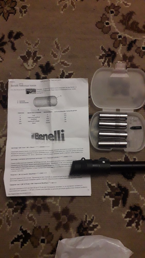 Может кто нибудь сориентирует,за сколько можно продать дульные сужения,мушку и магазин для Benelli, а может и кто заинтересуется.89529365508