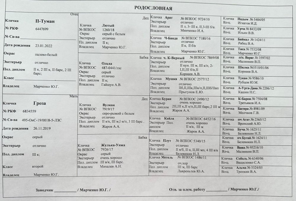 Питомник предлагает к продаже в активные охотничьи руки серо-палевого щенка (кобель) западносибирской лайки от рабочих родителей. Это 5е поколение лаек в питомнике. Родители и родственники охотятся в лесу регулярно, поиск широкий, универсалы (от пушнины, до копытных и медведя). Вязка плановая, один щенок остается в питомнике (выбирали из двух, поэтому этого придержали). Кобель перспективен как для охоты, так и для выставок. Видео работ родителей, родственников, знакомство щенка со шкурой есть в группе питомника - https://vk.com/laika_gladiator Порода - западносибирская лайка Количество щенков (кобели/суки) - 5 кобелей/ 3 суки Дата рождения - 17.10.2023 Кинологическая организация, спланировавшая вязку (если не плановая указать): РКФ Место нахождение щенков - МО (Можем привезти в Москву, Серпухов, Смоленскую обл. или найти и организовать доставку по России.) Контактная информация - https://vk.com/laika_gladiator или 8 (905)588-11-82, Юрий (пишите на ватсап, телефон может быть не доступен) Цена щенков (не обязательно) - 20 тр. мать: Гроза, 26.11.2019 гр., RKF 6834559, справка 495 ОиС-19/0018-5-ЛЗС вл. Марченко Ю.Г. Племенной класс: второй Оценка экстерьера: отлично от отец - Вулкан мать - Жулька-Унжа ДИПЛОМЫ: диплом 3 ст. по кабану. отец: П-Туман, 21.01.2022 гр., RKF 6447699 вл. Марченко Ю.Г. Племенной класс: - Оценка экстерьера: отлично от отец - Лютый мать - Ольха ДИПЛОМЫ: диплом 2 ст. по кабану, 2 диплома 3 ст. по кабану, диплом 2 ст. по барсуку, 2 диплома 3 ст. по барсуку. Питомник зарегистрирован в системе РКФ, через которую также проводятся пометы. При этом наши собаки имеют ВПКОС, что позволяет Вам, при желании, легко оформить потом свидетельство на приобретенную у нас собаку. (Если хотите РОРС свидетельство - выставка любая РОРС + диплом по профильному зверю и сдаете на ВПКОС. Этот порядок закреплен РОРС! 3 абз. снизу 8 стр. инструкции по оформлению племенной документации на охотничьих собак) Нашим выпускникам можем помочь оформить родословную РКФ по себестоимости услуги, без наценки (если вы обратитесь в клуб, они возьмут за работу сверху еще оплату) По желанию помощь в натаске, своих не бросаем)