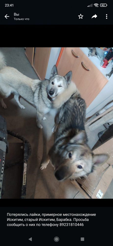 Просьба сообщить информацию о собаках. Ушли парой. Могут находиться выйти в старый Искитим или барабку Были в ошейниках. На светлой суке красный ошейник на кобеле чёрный. 89231810446