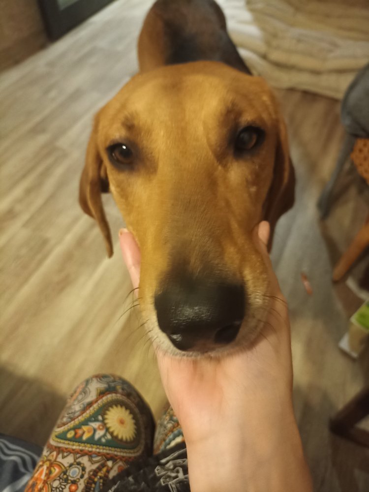 Ищем новый дом гончаку. Был найден в начале декабря, поиск хозяев результата не дал, клеймо и чип отсутствуют. Выжлец, очень молодой (год -полтора, не больше), игривый, довольно воспитанный, адекватный ко всем и во всем, управляем. Гуляем 3 раза в день, терпит до выгула. Обучаем. По охоте ничего сказать не можем, не ходили, надо пробовать и поскольку молодой - учить. Наших котов и собак не трогает, с молодым РОС стали лучшие друзья. Очень хотелось бы пристроить в охотничьи руки. К огромному сожалению наш старый РОС начал ревновать, затевать драки, по этой причине оставить у себя найденыша не можем. Тему не всегда смогу отследить,лучше звонить или писать в вотсап 89130159420.