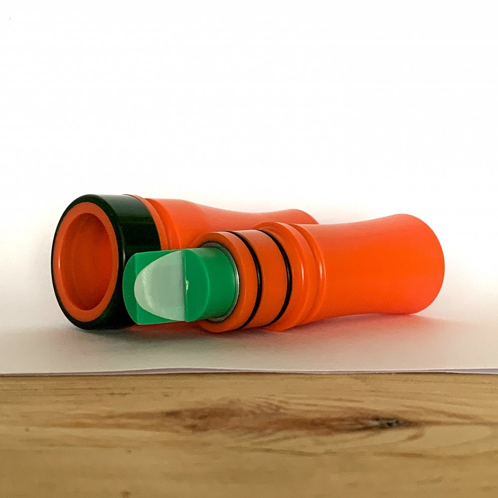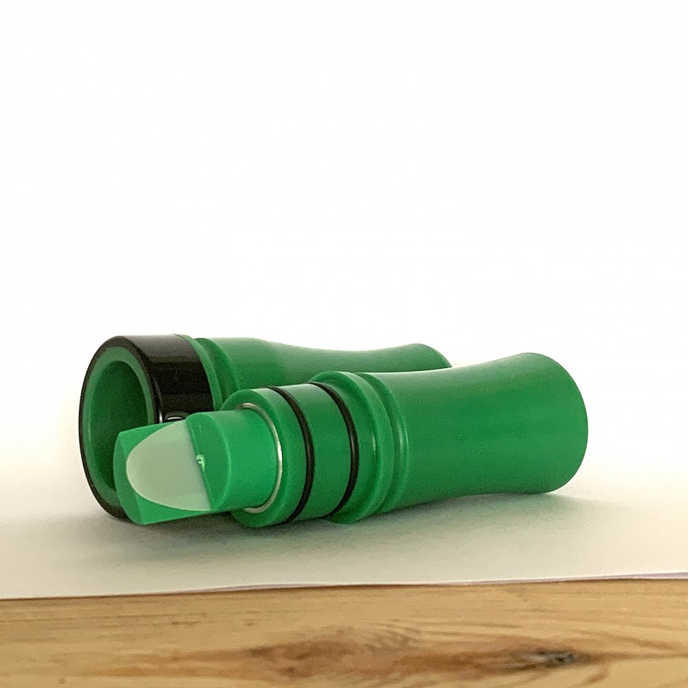 Корпус манка выточен из качественного цветного дерлина американского производства компанией DUCKPRO. Этот материал обеспечивает идеальное сочетание прочности и легкости, делая манок удобным в использовании и долговечным в эксплуатации. Манки оформлены акриловым кольцом что добавляет шарма этому инструменту и дюралевой втулкой которая надежно фиксирует звуковой узел в горне.