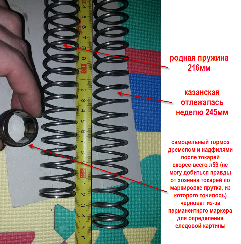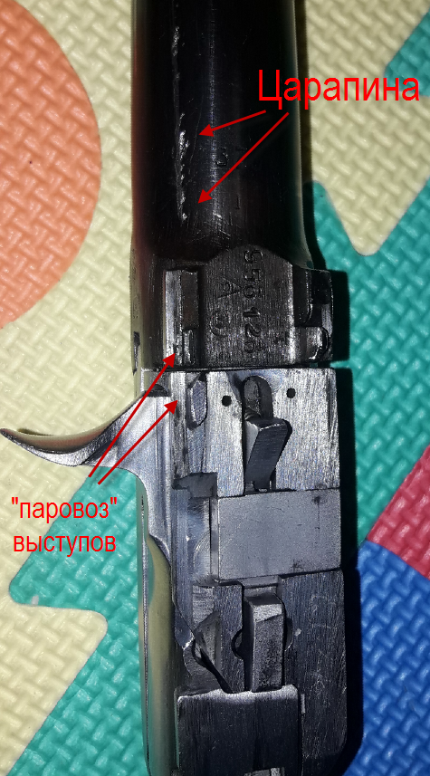 сложно разделить, где какая мысль о чем, я уже запутался, где чьё ружье рассматривалось и каких пользователей истории, потому как был и поломанный курок, и закрытый (полузакрытый затвор) с выпадающим патроном. К ружьям 80ых, особенно с двумя тормозами, у меня доступа нет, у товарища, что 70ых, у него старый тормоз 22 и один буфер (но мне еще не удалось его осмотреть разобранным), остальное, что могу посмотреть - новодел 90ых.