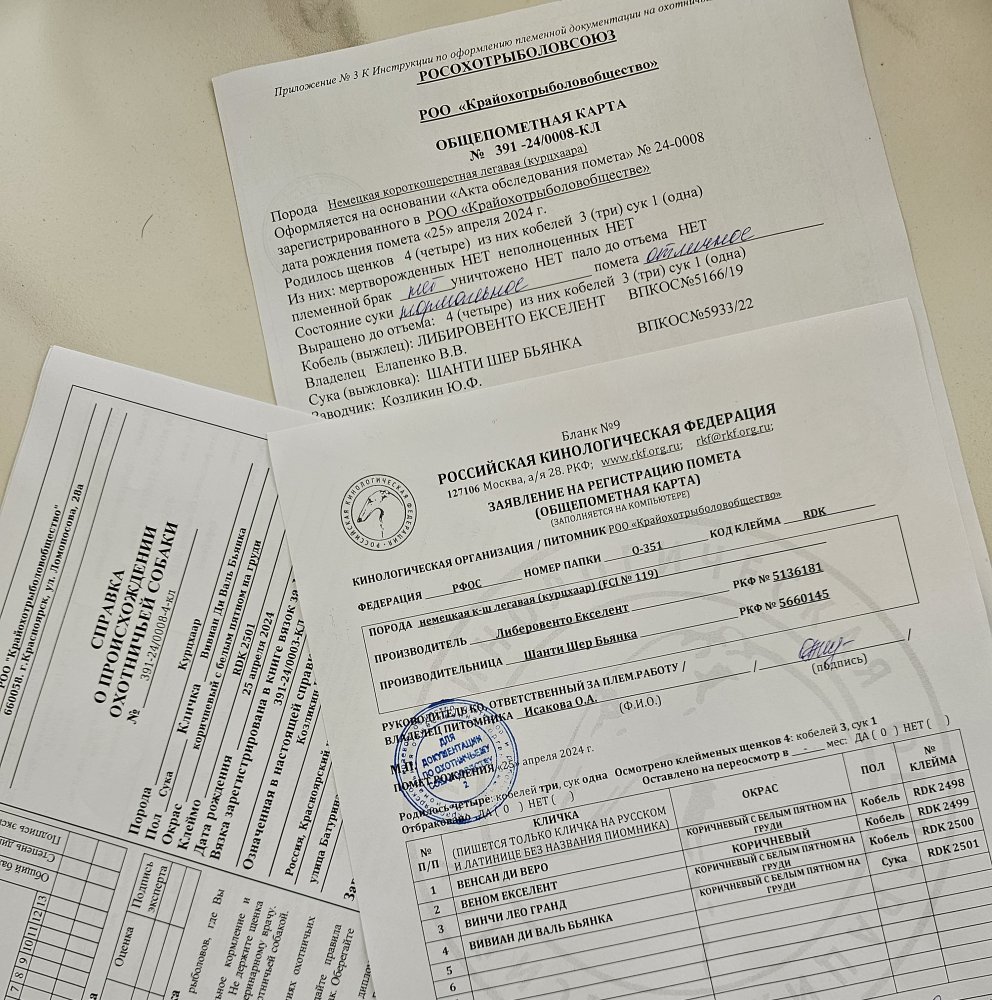 Прошли актировку. Всё отлично . Выписаны справки о происхождениии РОРС и метрики РКФ. Полный комплект документов. Первым уезжает домой Вен.