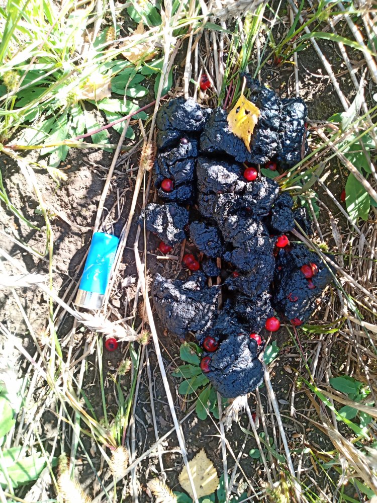 Помёт слегка заветренный, но не более суточной давности. Там на фото патрон 12 калибра для масштаба. Не думаю, что собака или человек