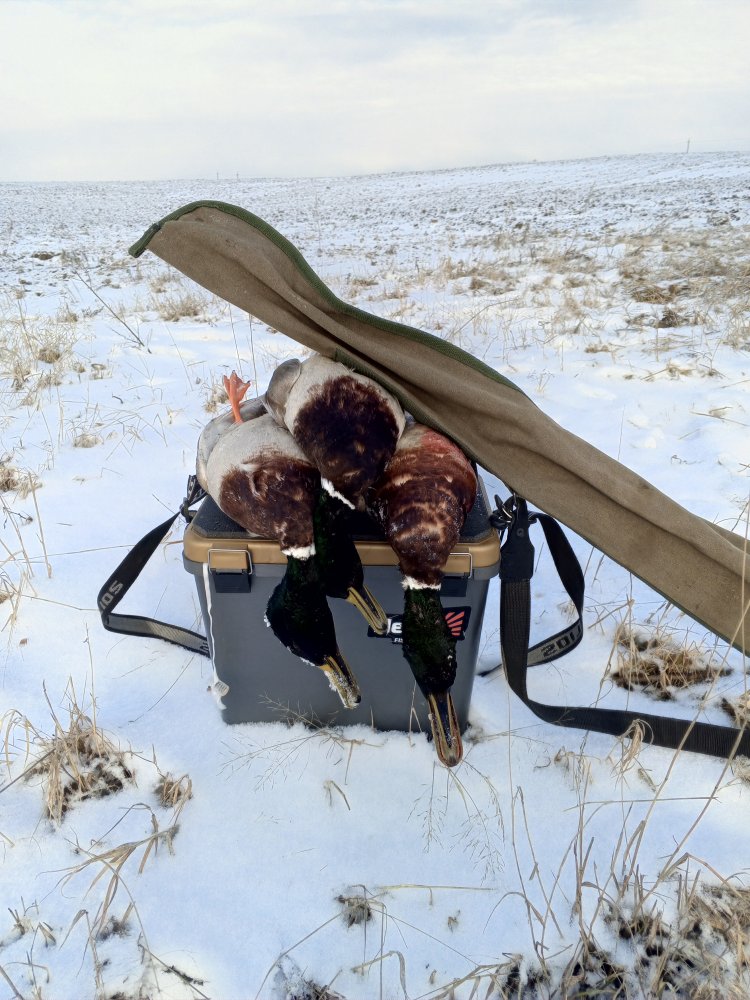 Второй заход. Малы трофеи, но главный в них шилый, коль редок у меня каждый год. Хотел кресло принести, как Леонид мне написал, но сил не хватило.) Ящик утиный тяжелый, уток носил под мышкой вместе со стульчиком.