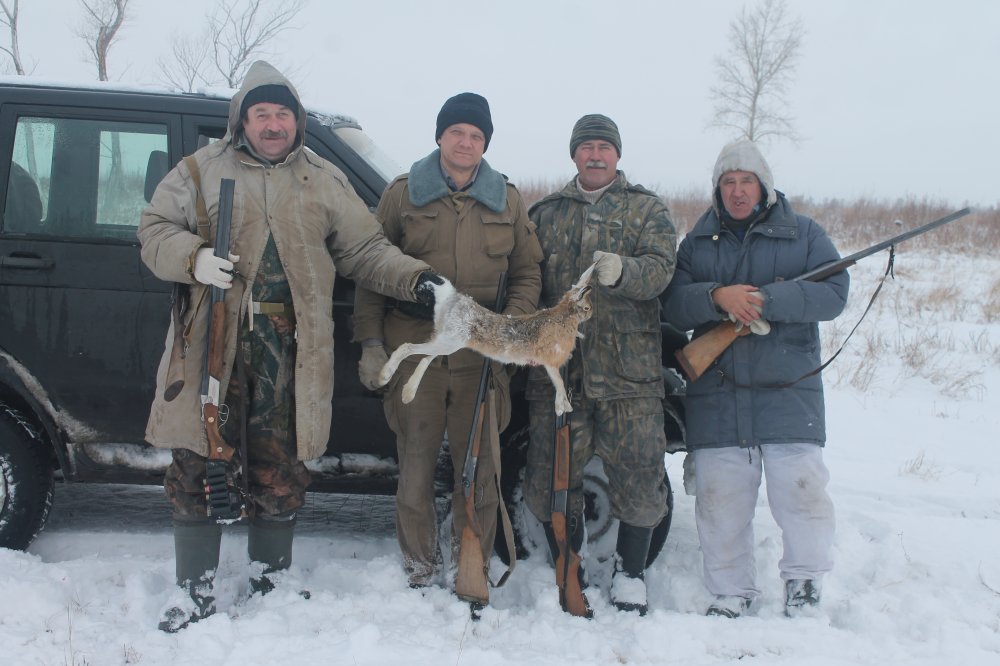 Съездили на зайчика, удачно. Спасибо собачке. Трофей достался каждому, плюс серая куропатка. На полях много лебедя, в пойме встречается утка, как одиночки, так и крепкие табуны.