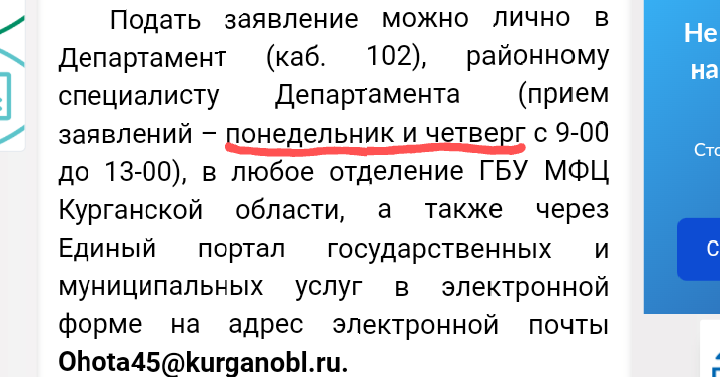@Igor_45, прием заявок понедельник, среда, пятница. А заявлений понедельник и четверг. Screenshot_20220504-151416~2.png Screenshot_20220504-151802~2.png . С сайта ДПР