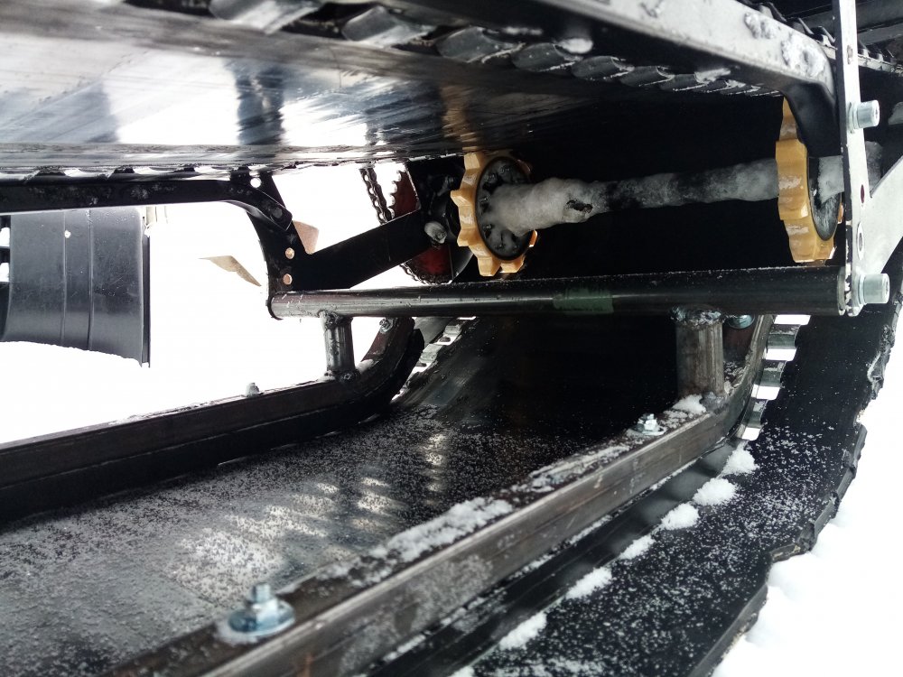А я в общем, выкинул всё и сделал без пружин, всё жёстко. Немного прокатился в принципе работает хорошо, но жестковато. Завтра на работе по гоняю, испытания нормальные сделаю, видик подвески сниму и фото сделаю, что нравится пока так это пусто в гусянке, снег вылетает враз, когда на твёрдое выезжаешь.