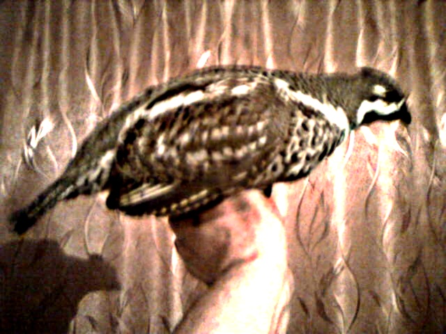 Не знаю, но в лесу выглядел абсолютно мертвым. <:-( А вот когда пытался фоткать, он всё норовил улететь и забиться то под кровать, то под стул и "матерился" как сапожник. Только когда зажал в руке лапы - ему поневоле пришлось позировать.