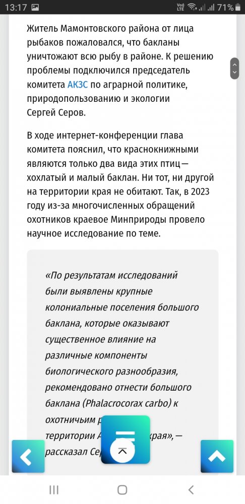 @А.К.Алейск, новость замечательная, если примут. Жалко, что на популяцию баклана это не повлияет. Ворона, вон, давно охотничий ресурс, но её количество не уменьшается. Будут его, конечно, постреливать, но не сильно больше, чем сейчас, просто без опаски и в основном те, у кого с бакланом "личные счёты". Но этот мизер быстро компенсируется возросшим приплодом. ИМХО. Но вообще, новость обнадеживающая.